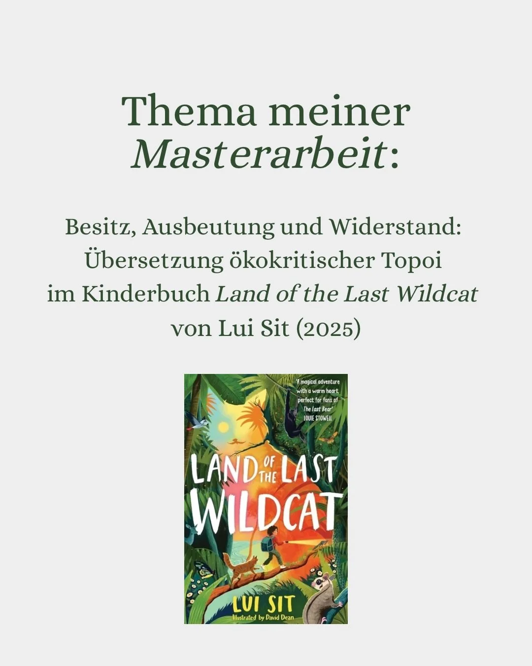 Masterarbeit: „Besitz, Ausbeutung und Widerstand: Die Übersetzung ökokritischer Topoi im Kinderbuch Land of the Last Wildcat von Lui Sit (2025)”