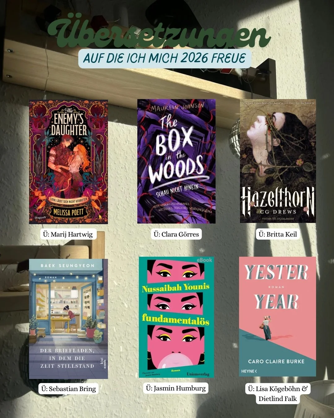 Auf Instagram teile ich Momente aus meinem Alltag als Übersetzerin – Buchrezensionen, Einblicke in laufende Projekte und kleine sprachliche Entdeckungen, die mich begleiten.